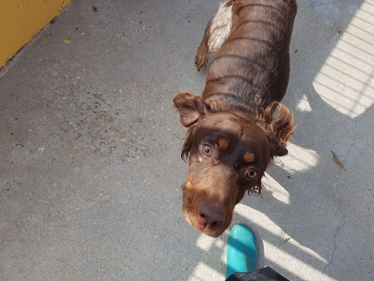 Der liebenswerte Bursche wartet trotz seiner uns unbekannten, aber sicherlich grausamen Vergangenheit sehnsüchtig und hoffnungsvoll auf sein Ticket ins Setterland.