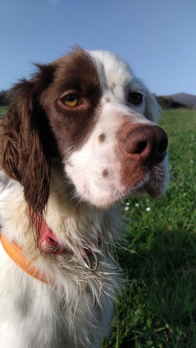 Unsere bildhübsche 2,5-jährige Liver Belton Hündin wurde von ihrem spanischen Jäger für die Jagd angeschafft. Extra ist er zu einem Züchter gegangen, um ein geeignetes Werkzeug zu bekommen. Aber SHENA hatte ganz andere Pläne für ihr Leben. Und jagen gehörte nicht dazu.