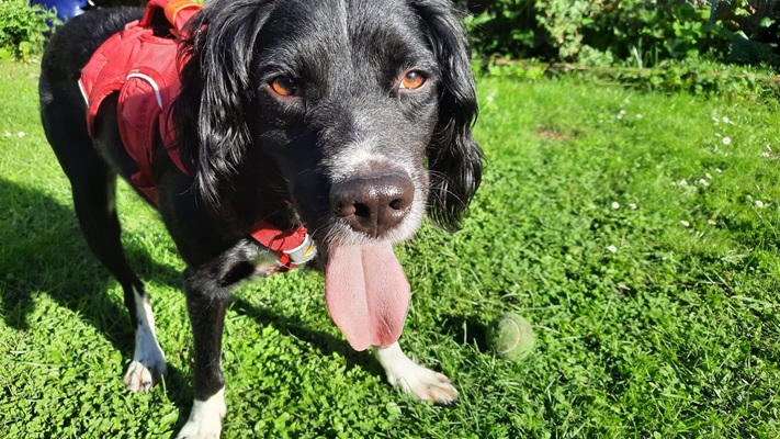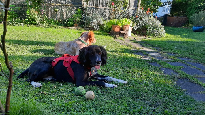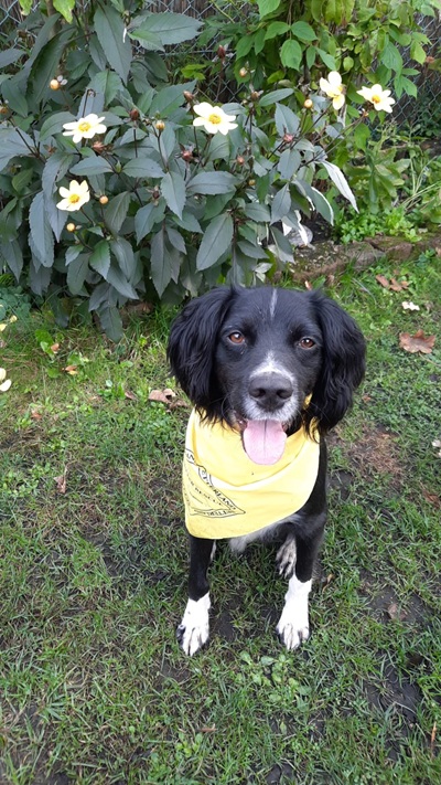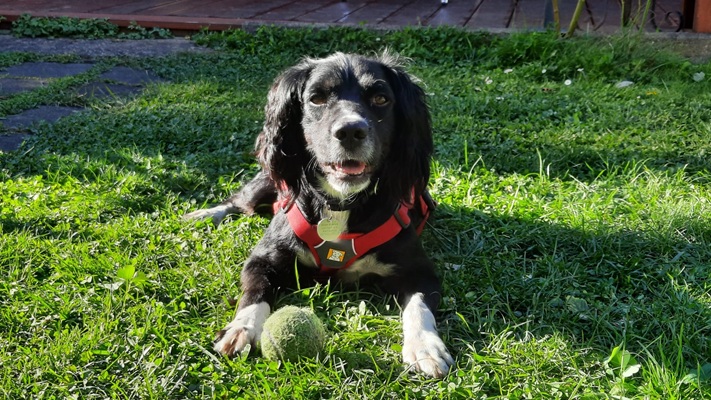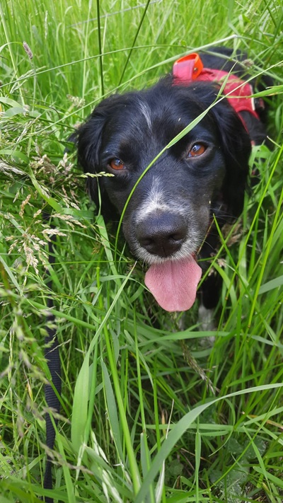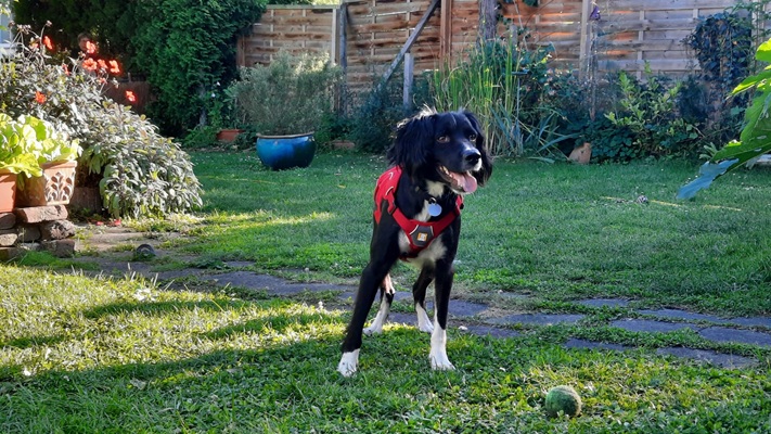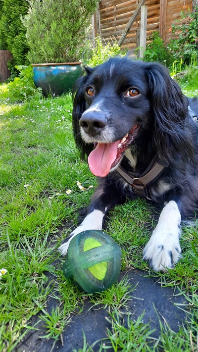 SKIPPER hat mittlerweile eine „innere Uhr“ und zeigt der Pflegestelle immer an, wann die Zeit für Gassigänge oder das Spielen im Garten gekommen sind.