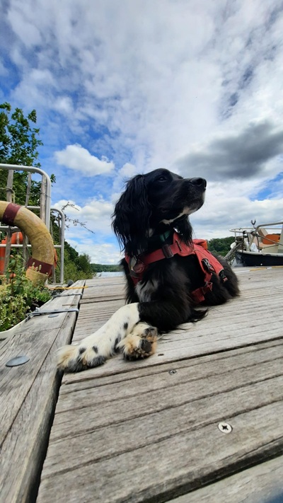 Jetzt, Ende Mai ist SKIPPER wieder im Urlaub und ganz in seinem Element. Auf dem Boot gefällt es ihm gut. Der Bootssteg ist fantastisch, um von dort die Enten, Kormorane und Schwäne zu beobachten. Heinz, der Schwan, kommt mehrmals täglich vorbei und Skipper bestaunt ihn aus sicherer Entfernung, denn Heinz kann ganz schon garstig in seinem Territorium werden.
