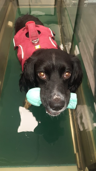 Mittlerweile war Skipper auch schon mit im Büro und hat das Leben als Bürohund an einem Tag ausprobieren dürfen. Er hatte dort einen Spielkumpel und die beiden haben sich viel miteinander beschäftigt, teilweise lag er auch ruhig unter einem Schreibtisch. Natürlich hat er den neuen Ort erstmal intensiv beschnüffelt und eine Pflanze, die auf dem Boden stand, wurde dann „rüdenhaft“ markiert. Zuhause, in seiner gewohnten Umgebung war Skipper nach rund 6 Wochen stubenrein. Bei der Tierärztin oder auch bei der Physiotherapie wurde bisher nie markiert.