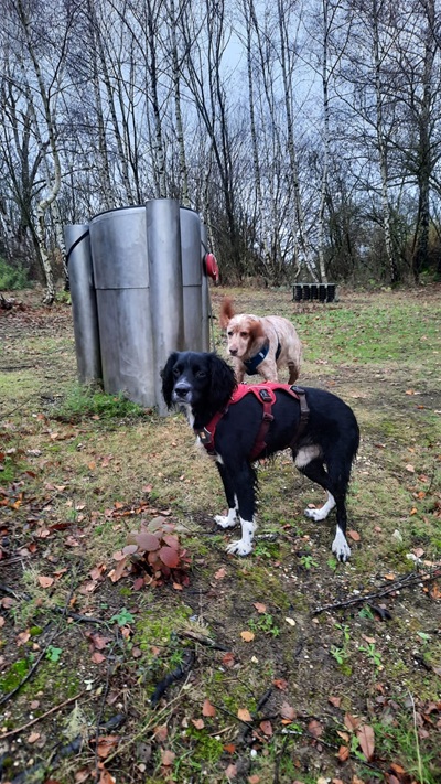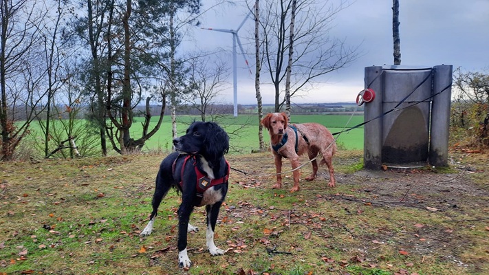 Mit der Pflegestelle war er auch schon im Februar im Urlaub, die Eifel und der dortige Wald haben ihm sehr gefallen, seine Hundefreundin Sena war auch mit dabei.