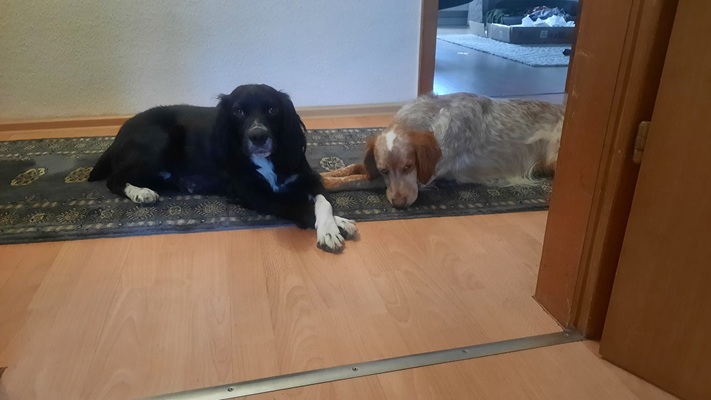 Die ersten Tage und Nächte waren für ihn sehr aufregend, denn alles war neu: das Leben in einer Wohnung, die Geräusche und die Setter- und Pinscher-Mix-Damen, die schon vor Ort waren.