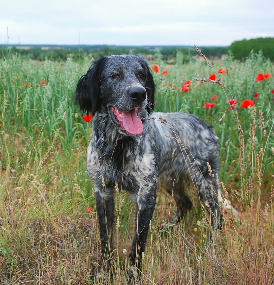 Nicht nur SOLs Euphorie und Freude macht auf ihn aufmerksam, auch seine Fellfarbe macht ihn zu etwas Besonderem, denn SOL ist ein Blue Roan Setter.