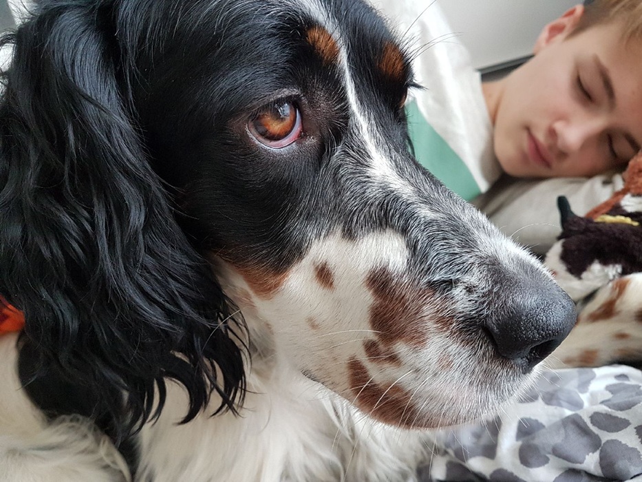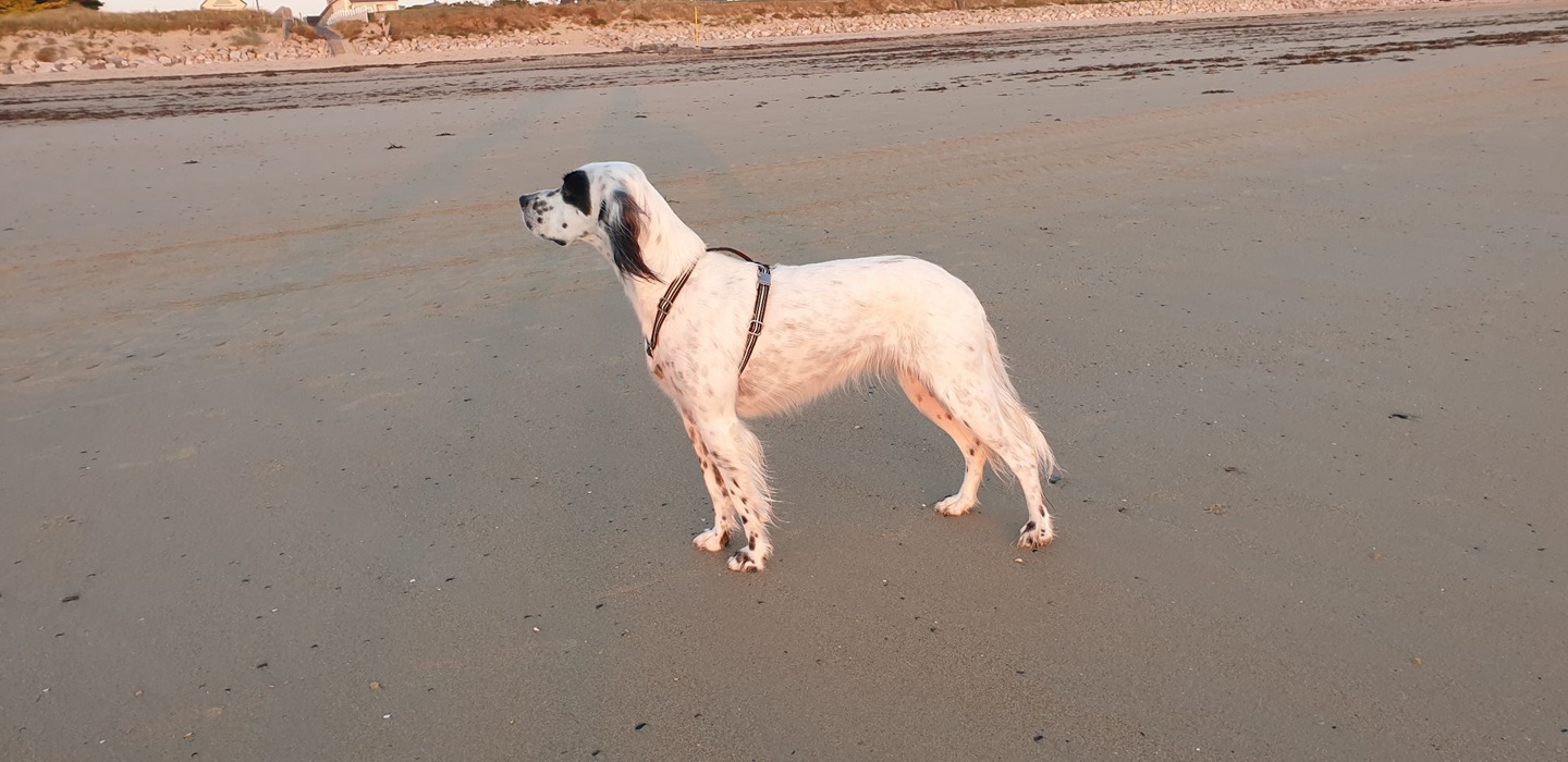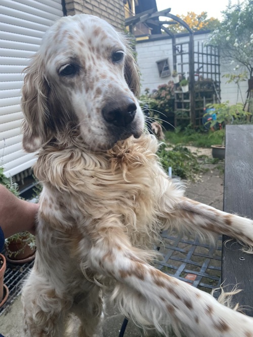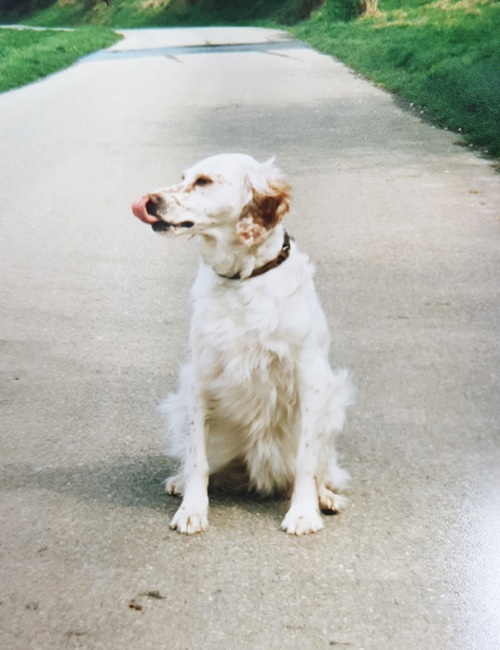 Zu mir gehört auch Jester, der Schutzpatron des Setterlandes.