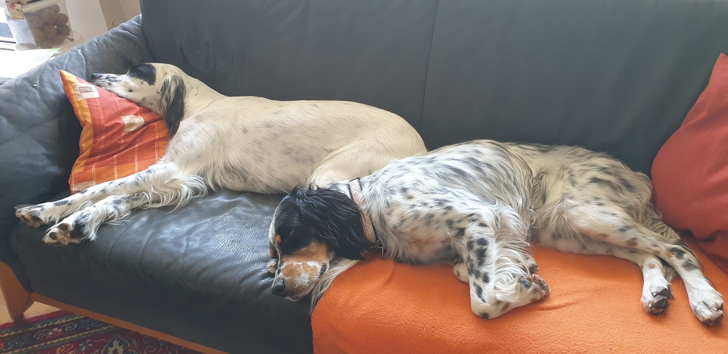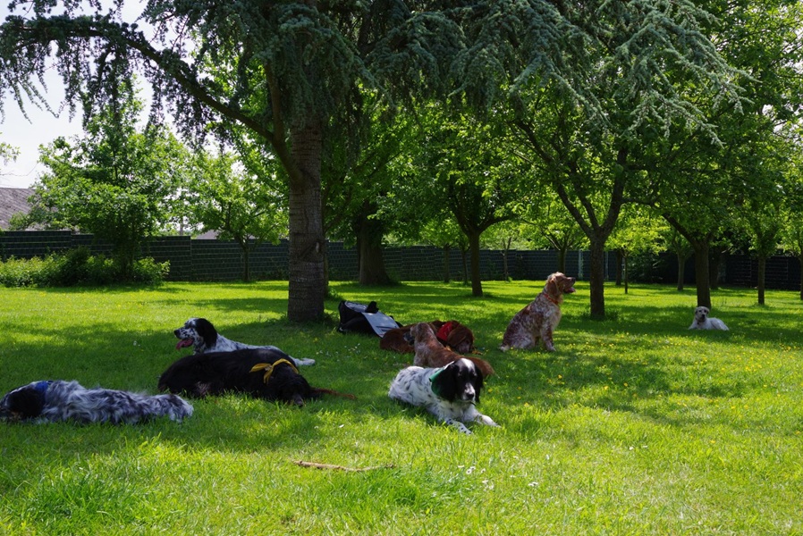 Heute lebe ich mit zehn Setter Mädchen in häuslicher Gemeinschaft und möchte keinen Moment mit ihnen missen. AIMEE mein kleines "Öhmchen", LULA, JOSIE, PATRICE, SUA, AVA, DAYNA, TXATA & CEARA... von Orange über Blue Belton, Tricolor oder Orange und Blue Roan ... es fehlt hier nur noch Liver Belton. Last but not least CATALEYA, endlich wieder eine Irish Red Setter Hündin.