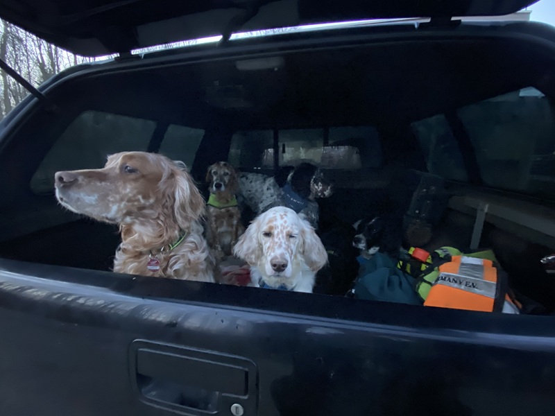 Nun ist mein Rudel endlich wieder bunt und ich freue mich auf eine tolle Zeit mit ihnen. Leider ist es abzusehen, dass mich so einige meiner Weggefährtinnen in den nächsten Jahren verlassen müssen .... doch in diesem Moment führe ich eins der größten Setterrudel im Freilauf ... es macht mich ein wenig stolz. Und im Sommer 2025 wird wieder ein kleines Gordon Mädchen dazukommen, wenn alles klappt!