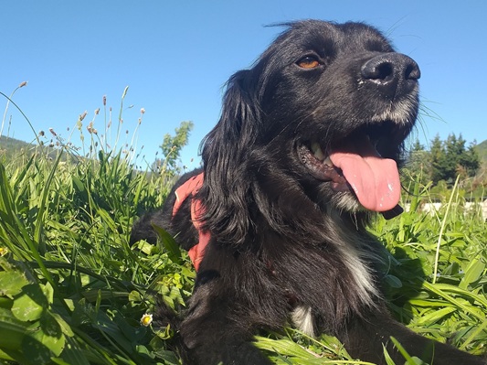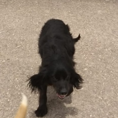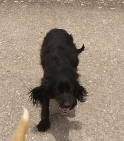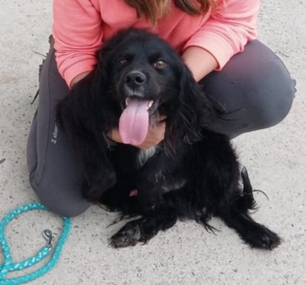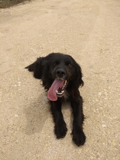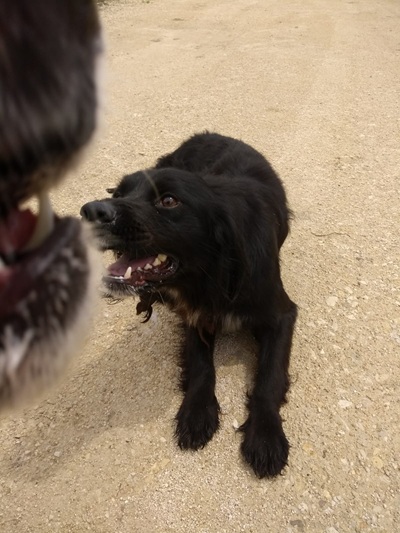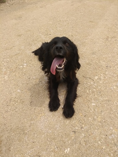 Der zweijährige TOMMY hat in seinem kurzen Leben noch nicht viel zu lachen gehabt. Unser JESTER – der Schutzpatron vom Setterland – hat den wunderschönen Setter-Mix-Rüden zusammen mit seinem Vater DUFFY in einem Verschlag im Baskenland aufgespürt. Nun völlig nutzlos, weil der Jäger seinen Job an den Nagel gehangen hat. Dabei ist TOMMY eine richtige Rarität mit seinem schwarzen Fell.
