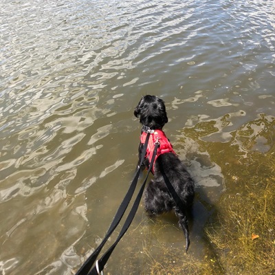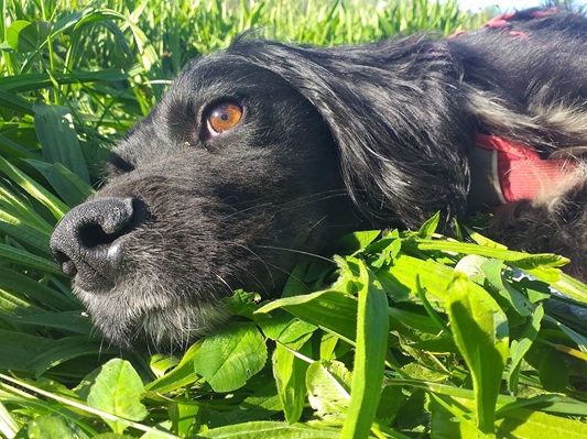 TOMMY ist ein Schätzchen. Er ist sehr lieb, lässt sich ohne Probleme überall anfassen, lässt sich kämmen und Jagdtrieb haben wir bei ihm noch nicht entdecken. Vögel lassen ihn bis jetzt kalt und einem Eichhörnchen hat er heute nur zugeschaut. Am ersten Tag war er sehr scheu. Beim erste kurzen Spaziergang hatte er vor Fahrrädern und Joggern besonders viel Angst. Dann wurde es von Gang zu Gang entspannter. Er läuft schon ganz passabel an der Leine. Er hat einen guten Appetit und stubenrein ist er auch schon so gut wie. Er lernt sehr schnell. Ich glaube, er ist sehr 'schlau'