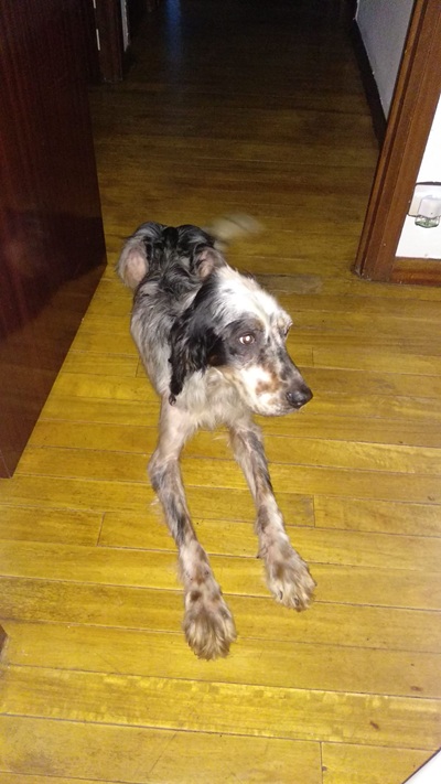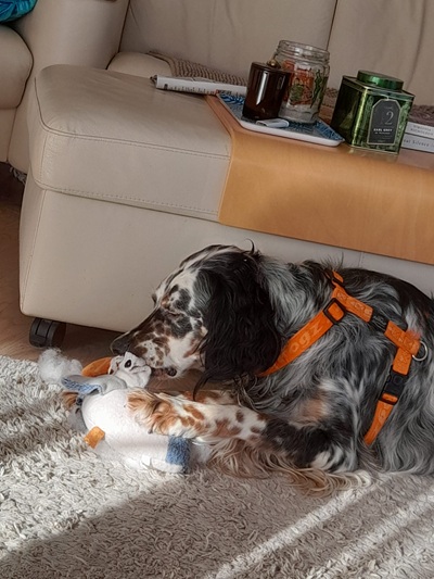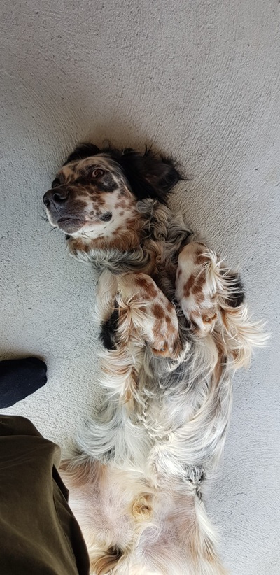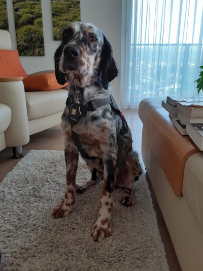 TRASGU kam gesund und wohlauf am 21. November 2020 im Setterland an. Er ist ein großer und sehr ängstlicher Prachtkerl, der nun ganz langsam an das neue Leben herangeführt werden muss. Er vertraut uns Menschen sichtlich nicht, wer weiss was er alles in seinem "alten" Leben ertragen musste?!