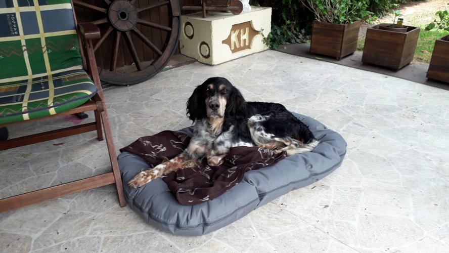 Nach langer, banger Wartezeit war es am 09.05.20 endlich so weit: TRISTAM, ein wunderschöner tricolor Rüde, konnte in die Arme geschlossen werden. "FILOU" wäre auch ein treffender Name gewesen, da er mit seiner liebenswerten, charmanten Art Mensch und Artgenossen um die Pfote wickelt. Haus, Garten und wir Beide wurden ganz schnell und selbstbewusst in Besitz genommen.