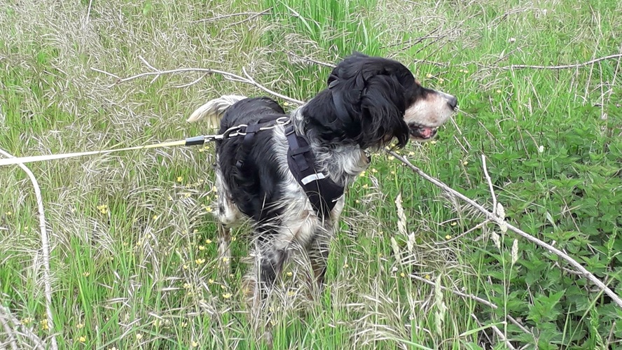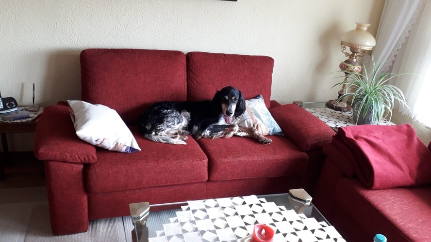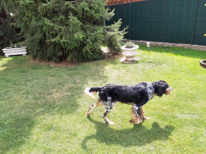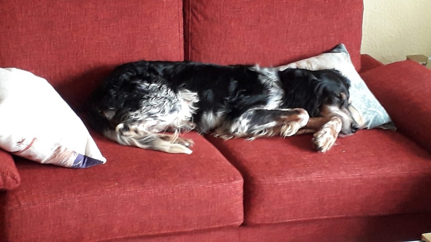 Er liebt lange Spaziergänge, geht sehr gut auch an der Leine. Er ist sehr schnell in seinem neuen Zuhause angekommen. Wir freuen uns sehr.