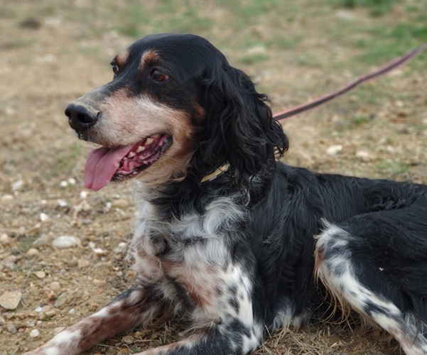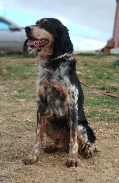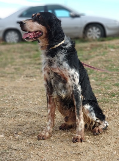 Er ist unser drittes Weihnachtsopfer: Der zarte und bildschöne, neunjährige Tricolor-Rüde TRISTAM, den JESTER kurz vor Weihnachten vom Jäger gerettet hat.