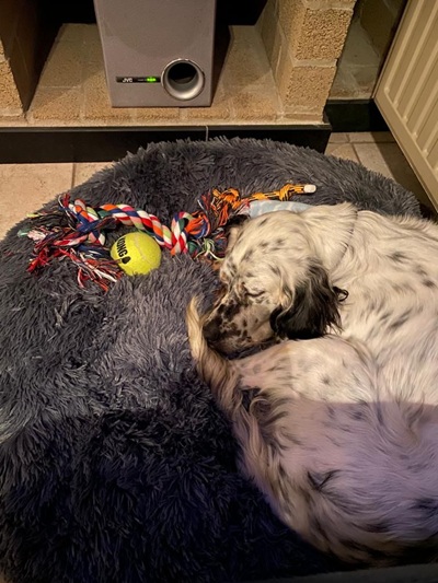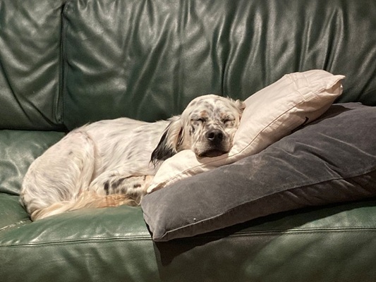 XAVIER loves to sleep. We bought him a special dog bed, but he prefers to lie on the sofa. Nice and soft and warm between the pillows, or with us. When we go for a walk it happens now and then that Morris lies down, as if he is tired and does not want to go any further. But when we call him, he still walks on. It is not really clear yet what he means by this behavior. Maybe it's something he once learned.