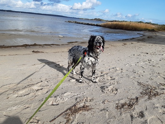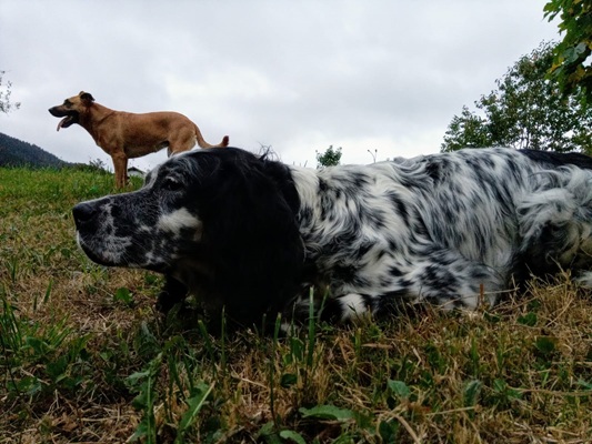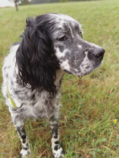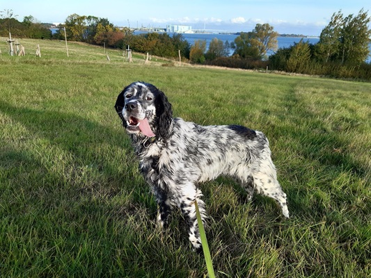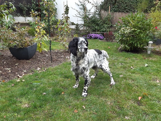 YUMA kam wohlauf und zunächst etwas schüchtern am 17. Oktober 2020 im Setterland an. Sie ist nach langer Fahrt hier gut angekommen und versteht sich prima mit CHUSPI. YUMA ist noch sehr unruhig und läuft immer hin und her - auch nachts. Ansonsten folgt sie Herrchen auf Schritt und Tritt. Wir waren schon Hasen jagen auf dem Feld, Enten jagen am Stand und Vögel jagen im Garten. Das macht ihr Spaß aber insgesamt hat sie deutlich weniger Jagdtrieb als CHUSPI.