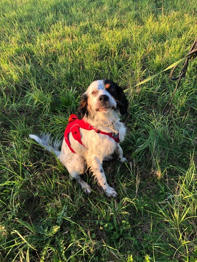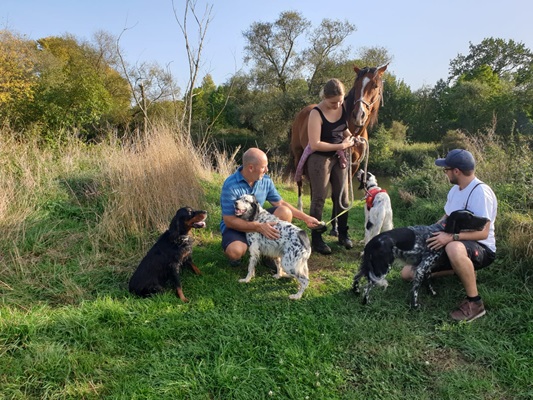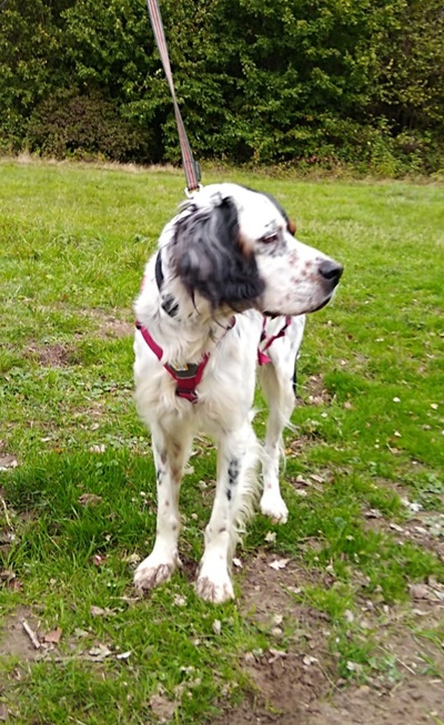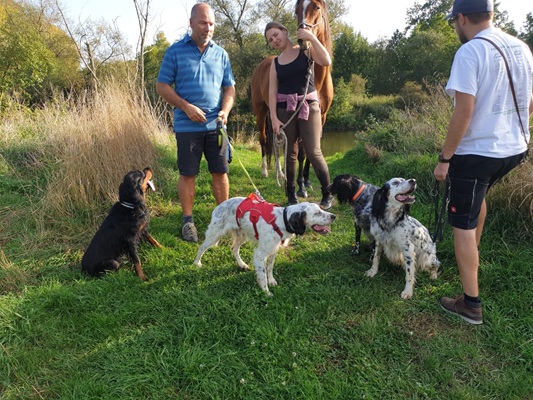 YVAIN ist ein fröhlicher, neugieriger, stürmischer junger Setter der sehr schnell versteht und lernt.